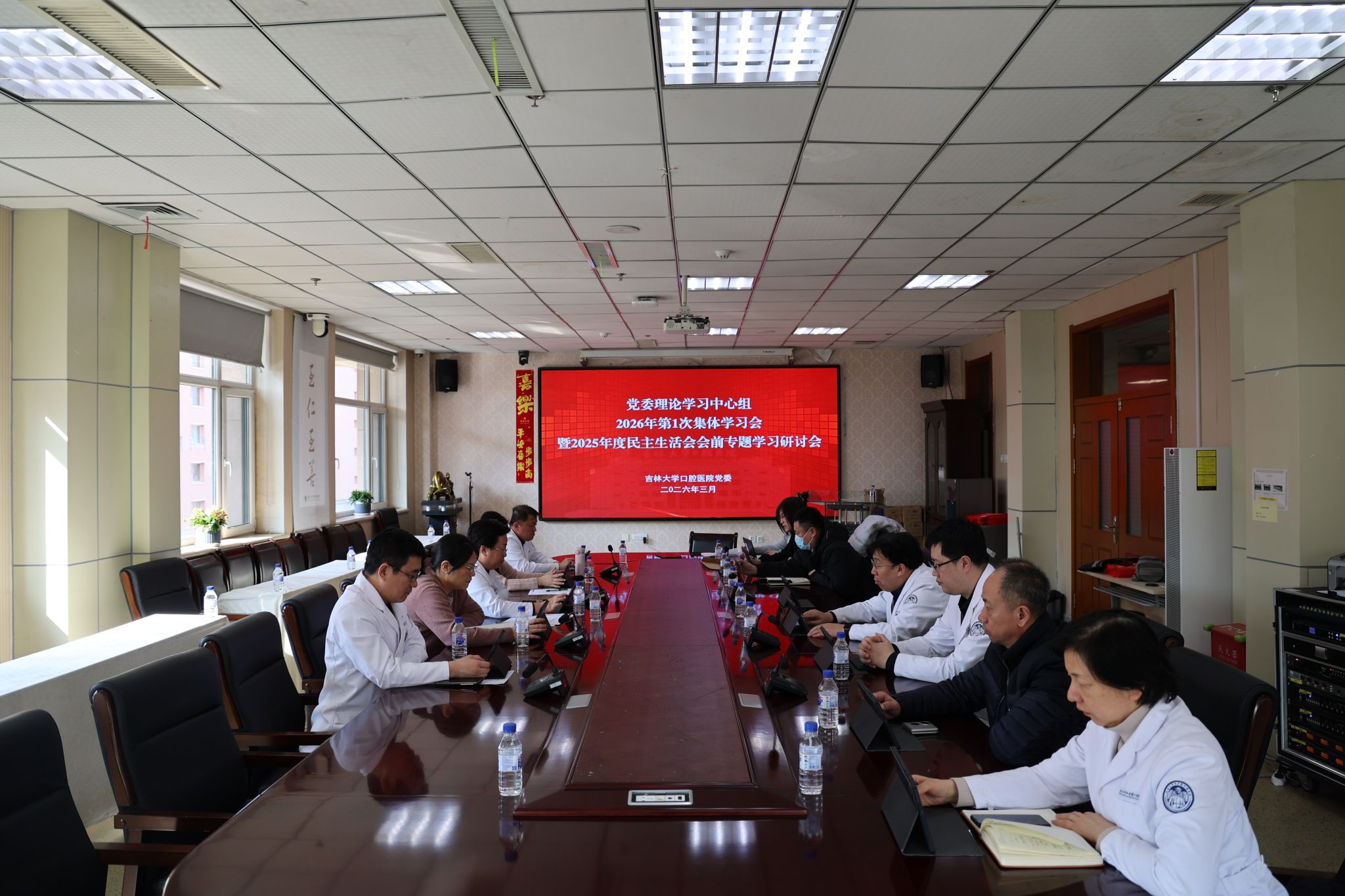 3月5日,口腔医院召开党委理论学习中心组2026年第1次集体学习会暨2025年度民主生活会会前专题学习研讨会,深入学习领会习近平总书记关于党的自我革命的重要思想以及关于加强党的纪律建设、作风建设的重要论述,集中学习习近平总书记在中央政治局民主生活会和第二十届中央政治局第二十一次集体学习时的重要讲话精神,为开好民主生活会打下坚实思想基础。