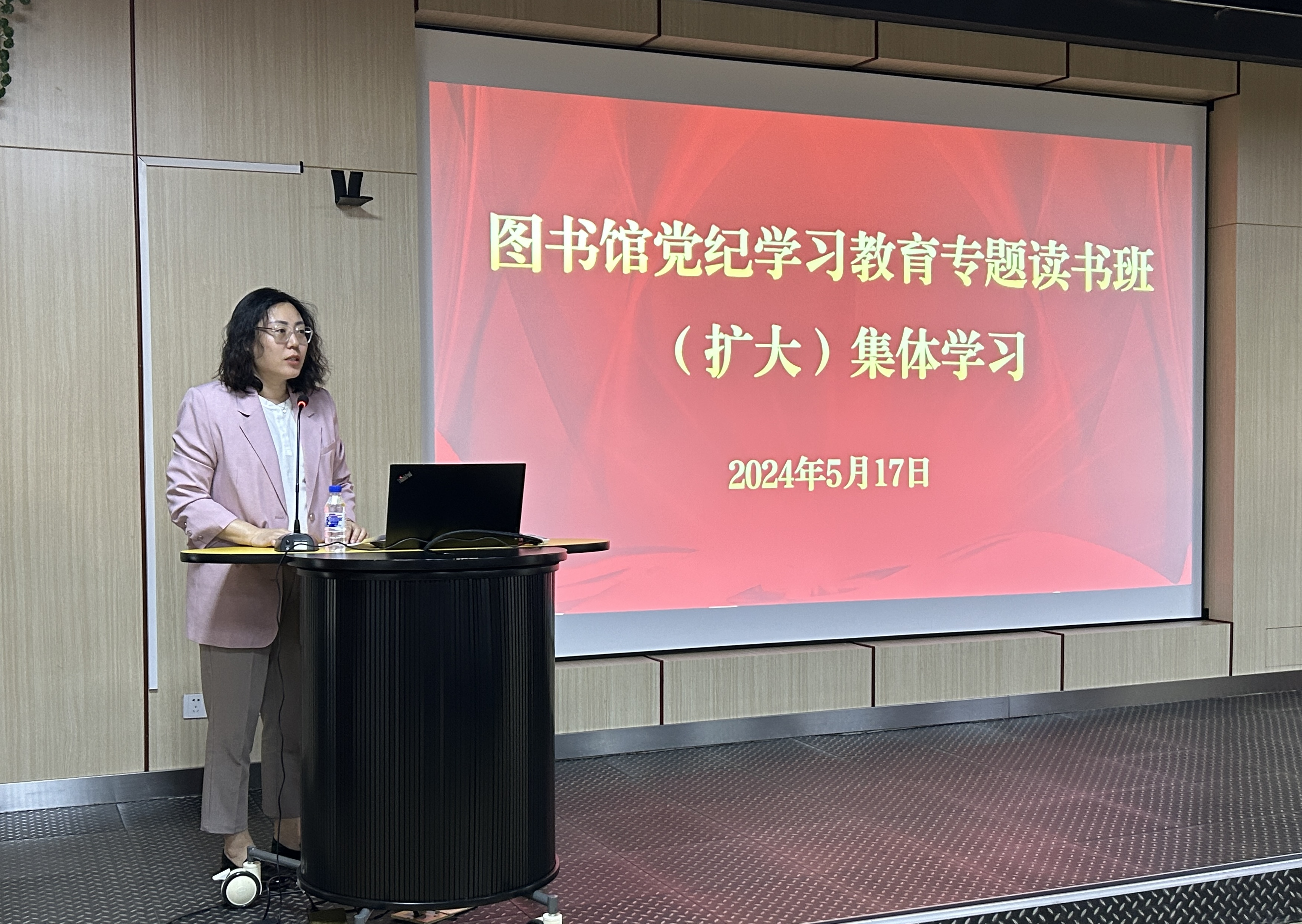 为深入学习贯彻习近平总书记关于党纪学习教育的重要讲话和重要指示精神,认真学习贯彻新修订的《中国共产党纪律处分条例》,按照学校党委工作部署和《图书馆党纪学习教育推进落实方案》要求,5月17日,图书馆党委召开党纪学习教育专题读书班(扩大)集体学习会议。会议由图书馆党委副书记、纪委书记王丹主持。