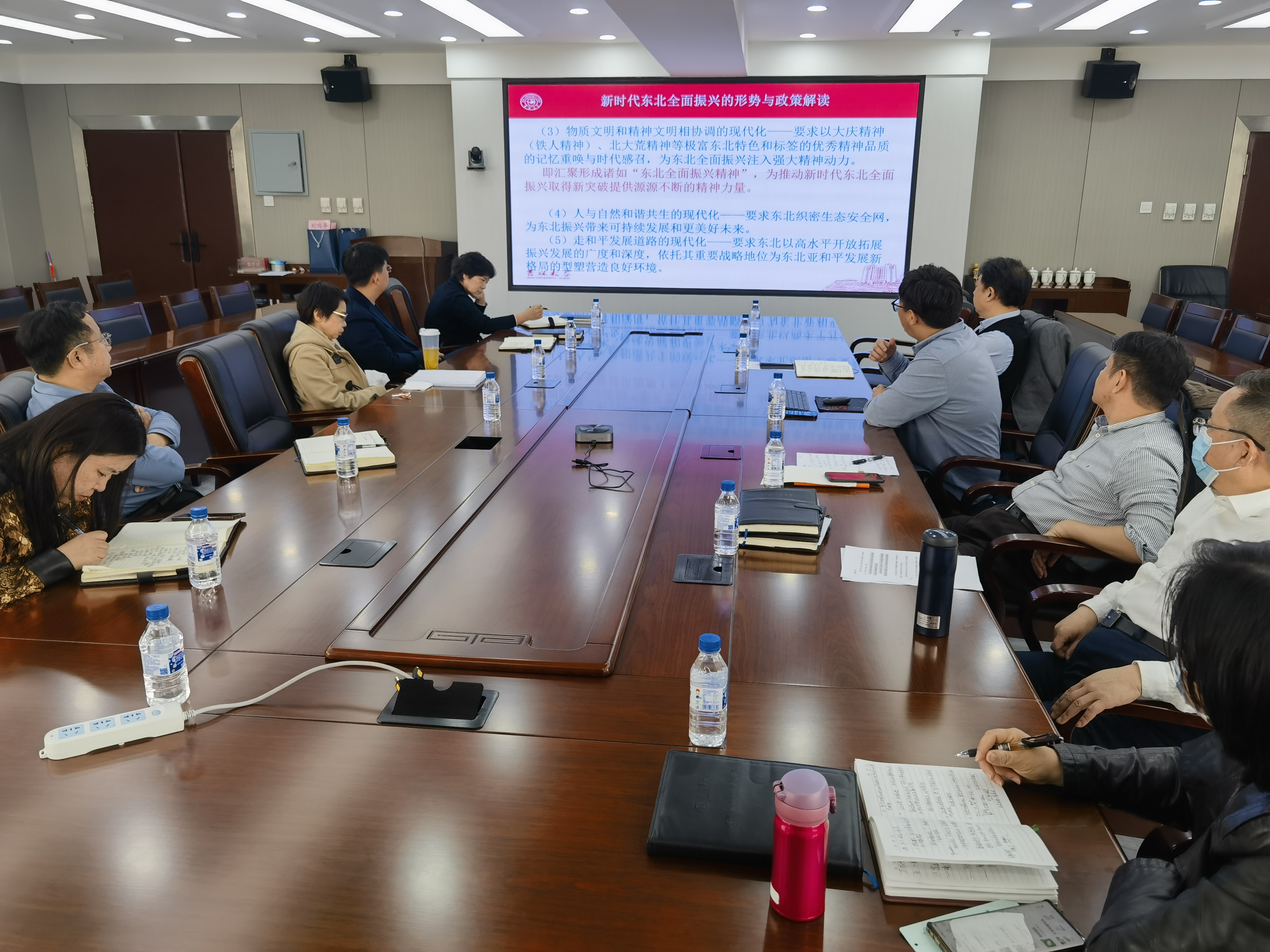 刘洋教授以“以高质量决策研究为新时代东北全面振兴贡献智慧力量”为题,对新时代东北全面振兴的形势与政策进行了解读。与会成员围绕推动东北全面振兴文史学科开展决策咨询研究的领域方向等话题开展了交流讨论。