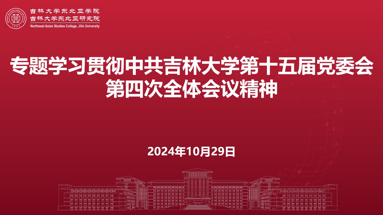 2024年10月29日,东北亚学院召开党委理论学习中心组集体学习会议,专题学习吉林大学第十五届党委会第四次全体会议的决议(草案)。学院领导班子成员、党委委员参加会议,会议由学院党委书记赵毅博主持。