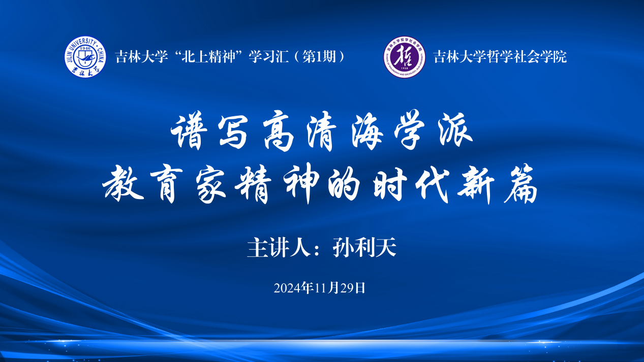 11月29日,吉林大学“北上精神”学习汇(第1期)活动在东荣大厦904会议室顺利举行。本次活动特邀吉林大学哲学基础理论研究中心副主任、哲学社会学院教授、博士生导师孙利天作题为“谱写高清海学派教育家精神的时代新篇”的专题讲座。吉林大学党委宣传部副部长张倩、吉林大学关工委王成果,哲学社会学院党委书记张晓萌、学院领导班子全体成员以及学院各教职工、学生支部党员和师生代表共同参加活动。活动由学院党委副书记兼副院长刘培强、副院长李龙主持。