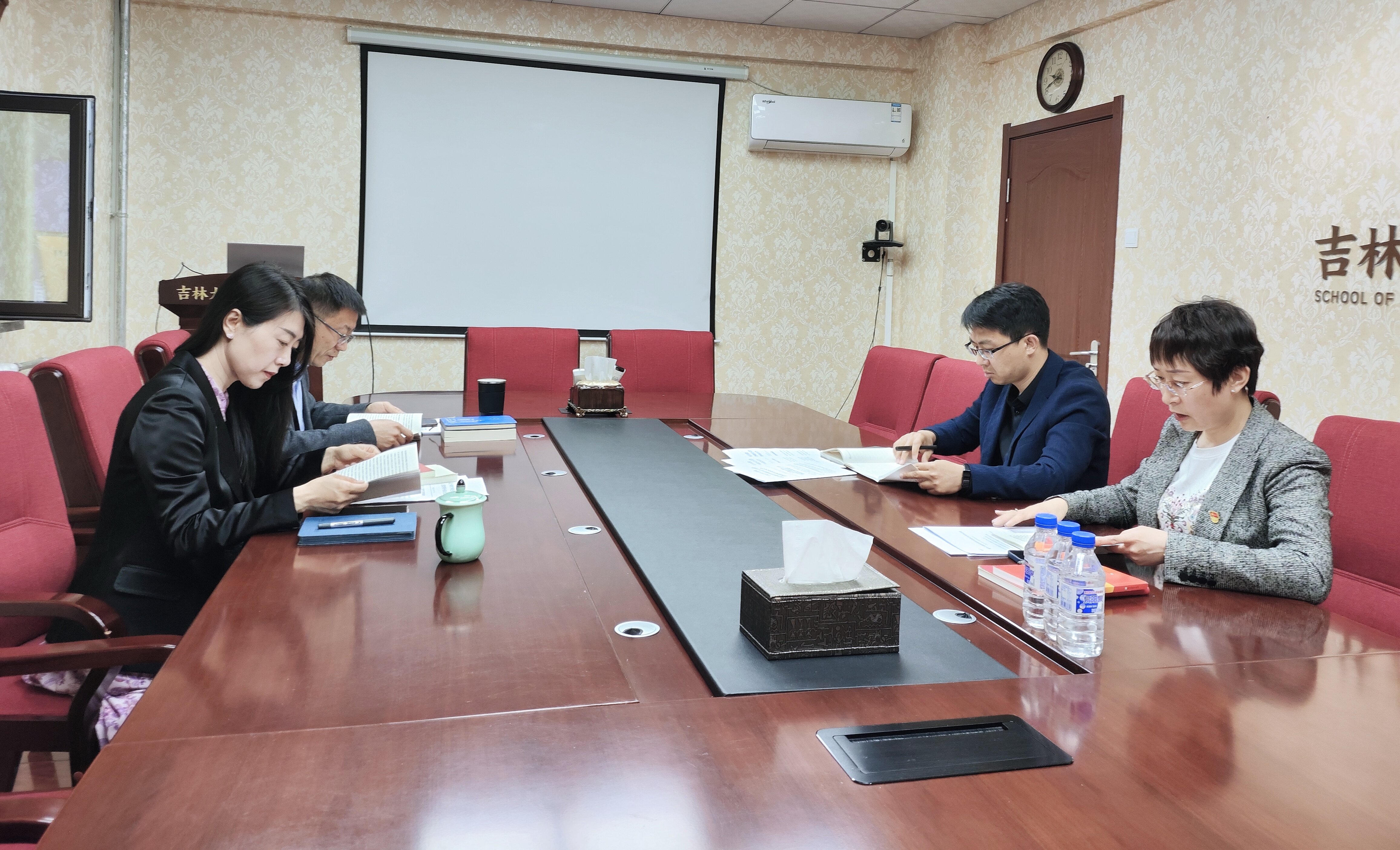2024年9月30日,公共外交学院党委在吕振羽楼217会议室召开理论学习中心组会议,深入学习党的二十届三中全会精神和贯彻落实全国教育大会精神。会议由学院党委书记杨民主持,学院领导班子成员、党委理论学习中心组全体成员参会。