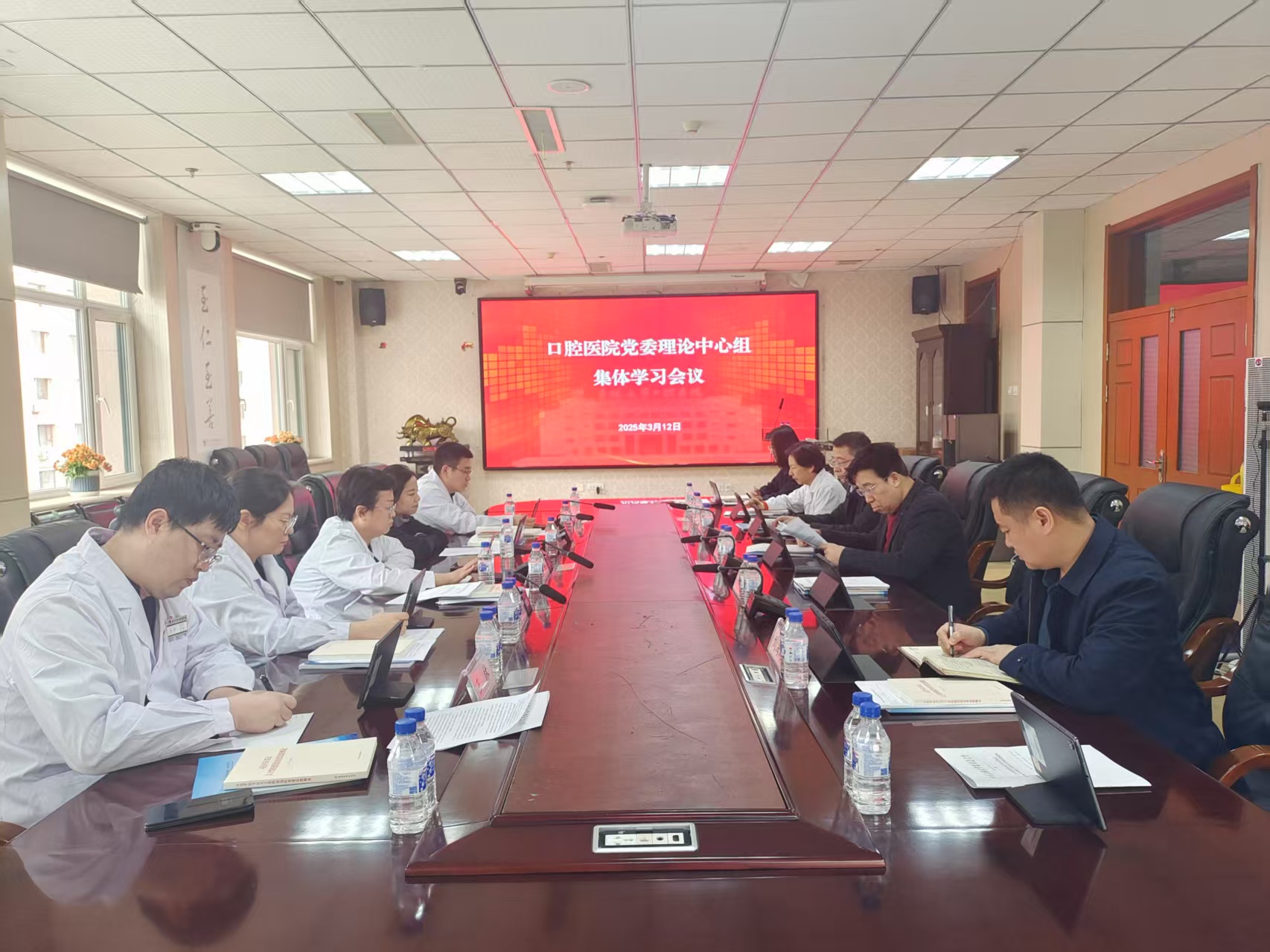 3月12日下午,口腔医院党委理论学习中心组举行2024年度民主生活会会前集中学习研讨。院党委书记胡敏主持会议并讲话。党委理论学习中心组成员参加会议。
