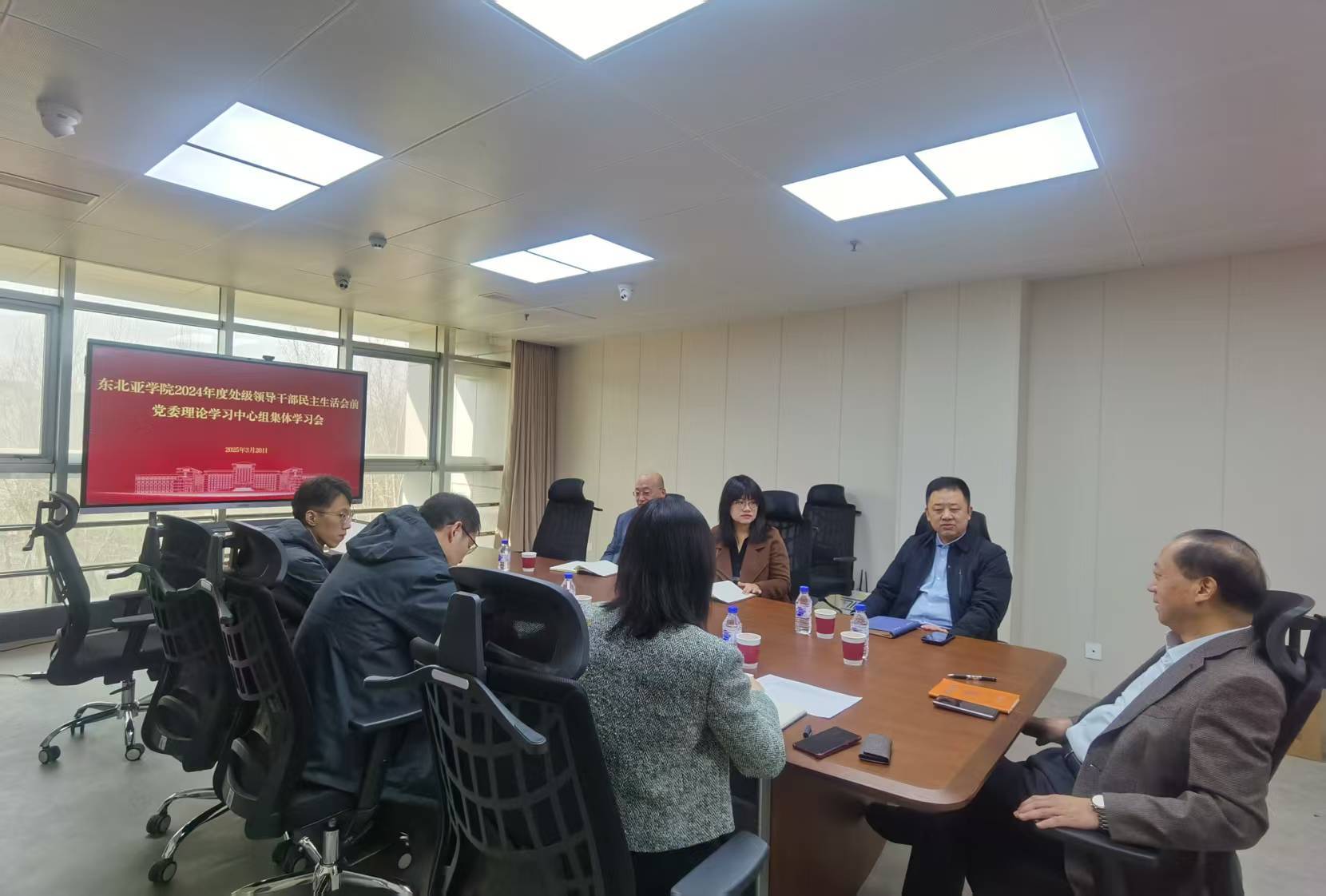 2025年3月20日,东北亚学院党委召开2024年度处级领导干部民主生活会前党委理论学习中心组集体学习会。学院党委书记赵毅博主持会议并讲话。学院全体党员领导干部参加了会议。
