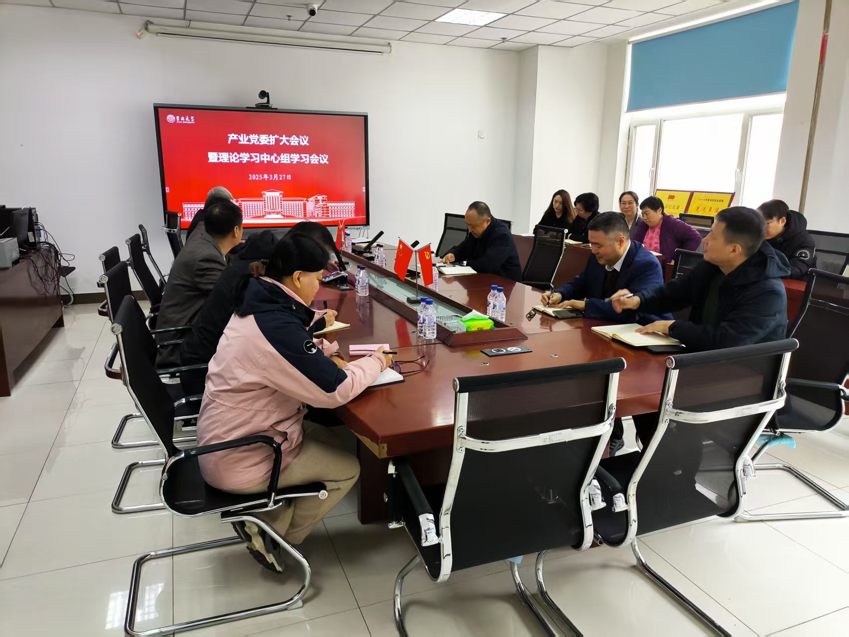 2025年3月27日上午,产业党委在南湖校区后勤综合楼召开理论学习中心组学习会议,学习习近平总书记重要讲话、重要论述精神、学校相关会议精神、北上精神和中央八项规定精神。产业党委党委委员、纪委委员、处级领导干部、党支部书记、机关支部全体党员参加了会议。会议由李佰志主持。
