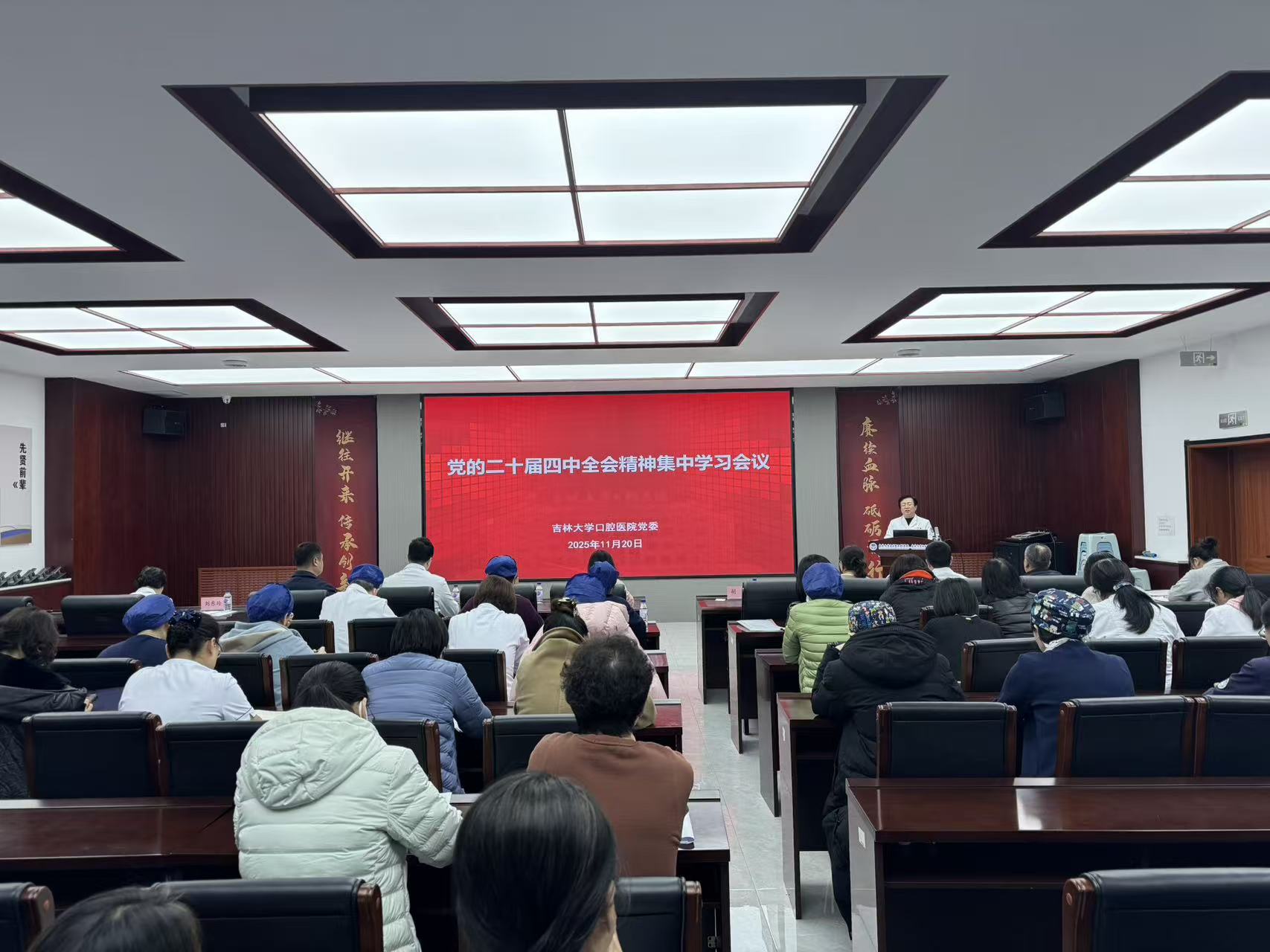 11月20日,口腔医院党委组织召开专题会议,集中学习党的二十届四中全会精神。党委书记胡敏主持会议并领学习近平总书记关于《中共中央关于制定国民经济和社会发展第十五个五年规划的建议》的说明及《建议》全文,对《建议》的核心要义和创新观点进行了解读。