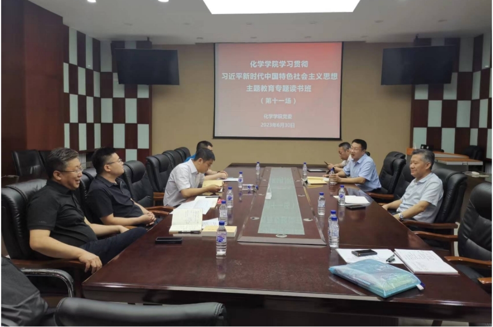 按照学院党委制定的学习领会习近平新时代中国特色社会主义思想主题教育专题读书班的计划安排,6月30日上午,化学学院党委在唐敖庆楼A308会议室组织召开了学院党委理论学习中心组会议暨学习贯彻习近平新时代中国特色社会主义思想主题教育专题读书班(第十一场),学院处级领导干部参加了此次会议。会议由党委书记宁德宽主持。